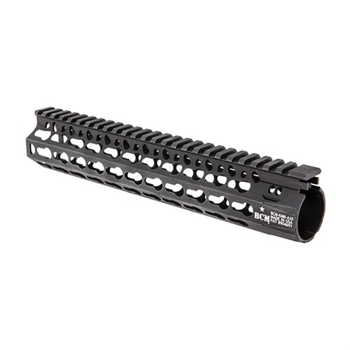 Bravo Company’s machined aluminum BCM KMR Alpha Handguard free-floats the barrel for better accuracy potential while it provides plenty of KeyMod™ slots for add-on rail segments and accessories. Built-in Picatinny top rail is supplemented by KeyMod™ slots at - and between - the 3, 6 and 9 o'clock positions. Fits standard AR-15 upper receiver Lightweight yet robust aluminum construction, reinforced with non-reflective hardcoat anodized finish 1.5" O.D., measured flat-to-flat, 1.3" I.D. Proprietary barrel nut and mounting hardware INCLUDED Comes with one KeyMod rail segment - more rail segments sold separately The Bravo Company BCM KMR Alpha Handguard flares slightly at the front into a special, flat-bottomed shape that's comfortable to hold, and provides stable support when shooting off barricade or obstacle. Brownells Gun Tech™ Note: The KeyMod™ accessory-mounting system was developed by Eric Kincel, who is now the director of Bravo Company’s product development team. It is designed to work in parallel with the existing MIL-STD 1913 Picatinny rail systems, often providing greater versatility, modularity, and ease of configuring accessories than Picatinny rails alone.