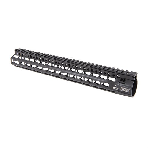 Bravo Company’s machined aluminum BCM KMR Alpha Handguard free-floats the barrel for better accuracy potential while it provides plenty of KeyMod™ slots for add-on rail segments and accessories. Built-in Picatinny top rail is supplemented by KeyMod™ slots at - and between - the 3, 6 and 9 o'clock positions. Fits standard AR-15 upper receiver Lightweight yet robust aluminum construction, reinforced with non-reflective hardcoat anodized finish 1.5" O.D., measured flat-to-flat, 1.3" I.D. Proprietary barrel nut and mounting hardware INCLUDED Comes with one KeyMod rail segment - more rail segments sold separately The Bravo Company BCM KMR Alpha Handguard flares slightly at the front into a special, flat-bottomed shape that's comfortable to hold, and provides stable support when shooting off barricade or obstacle. Brownells Gun Tech™ Note: The KeyMod™ accessory-mounting system was developed by Eric Kincel, who is now the director of Bravo Company’s product development team. It is designed to work in parallel with the existing MIL-STD 1913 Picatinny rail systems, often providing greater versatility, modularity, and ease of configuring accessories than Picatinny rails alone.