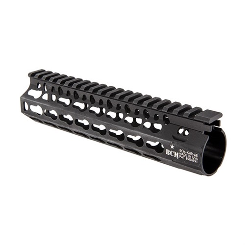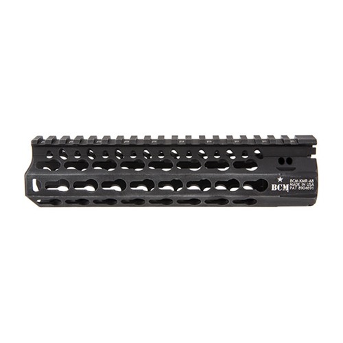 Bravo Companyn koneistettu alumiininen BCM KMR Alpha -kahva kelluu piipun ympärillä, mikä parantaa tarkkuutta ja tarjoaa runsaasti KeyMod™-paikkoja lisävarusteiden ja rautalankojen kiinnittämiseen. Integroitu Picatinny yläraja on täydentynyt KeyMod™-paikoilla kello 3, 6 ja 9 -asennossa.