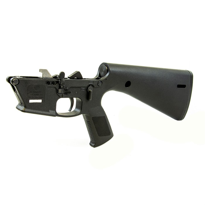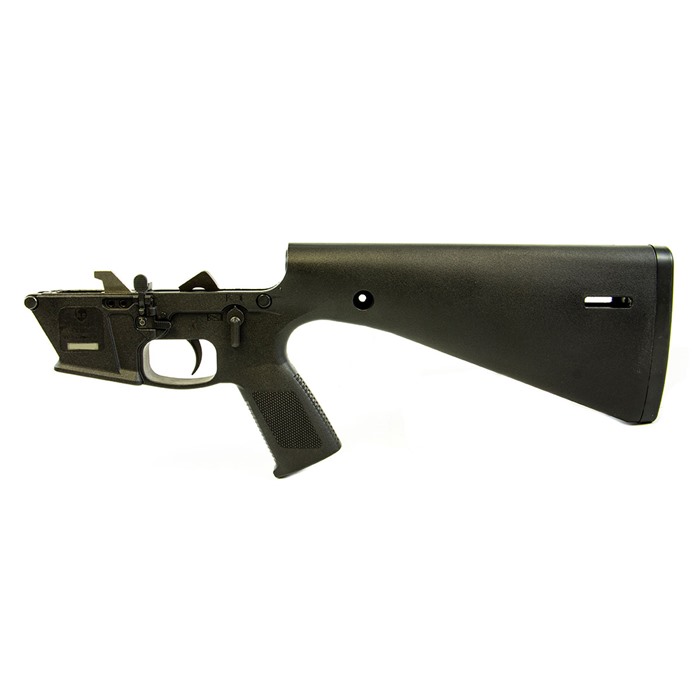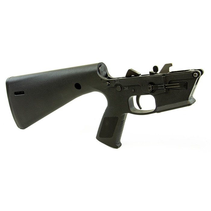 The KP-9 is a monolithic polymer 9mm Glock Mag Compatible AR15 style receiver made from injection molded 30% glass filled nylon incorporating the buttstock, buffer tube, pistol grip, and trigger into the receiver design as integral components. This manufacturing process offers several advantages, such as lighter weight compared to similarly configured receivers, lower cost to similarly configured receivers Features Include: Compatibility with most common 9mm AR15 uppers and lower parts kits Compatible with Glock 17 and 19 Magazines Flared magwell to make reloads under stress easier to perform. A1 Length 13” Length of Pull (LOP) Buttstock to fit a wide range of shooters MLOK Slots at rear of stock for sling attachment points or run a strap through it for simple sling attachment Holes at the front of the stock for QD socket inserts for more sling attachment options Improved grip for comfortable use “Winter” Trigger Guard Mil-Spec FCG Lowers Include: Mil-Spec Fire Control FCG and Optimized Selector 5.4oz 9mm Heavy Buffer and Spring Bolt Catch Assembly* Pivot and Take Down Pins KP-9 Selector Detent Buttplate 5/64" Roll Pin to Retain Buffer Detent Ambi Glock Magazine Catch Assembly Adjustable 9mm Steel Ejector Technical Information The KP-9 receiver uses a Carbine buffer and spring. Do NOT use anything other than standard 9mm carbine buffers and round springs or the JP SCSS in the KP-9. The Take Down and Pivot Pins have the detents built into them, eliminating the spring and detent holes in the lower increases durability. The buffer detent (should you choose to use it) is held in place with a 5/64” Roll Pin The KP-9 is compatible with all Mil-Spec Fire Control Groups The KP-9 is compatible with cassette style match triggers including the KE Arms SLT units. The retention system of these triggers with D-Clips in the bushings to retain the fire control pins makes them better suited for use in the KP-9 than other designs that require captured pins.* The hammer pin area is wider for durability; Standard AR15 hammer pins can still be used but we offer a longer hammer pin for customers preferring a flush pin for aesthetic reasons. Safety selector spring and detent load from the top and then the selector is slid over them. Standard selectors can work but removing them can be particularly difficult. We recommend the use of our optimized mil-spec selector or optimized ambi selector to make removal easier. Follow our assembly guide for further instructions. The KP-9 is compatible with 9mm blowback systems with a 5.4oz carbine buffer minimum. Use heavier buffers as long as your gun can cycle reliably. Failure to use this minimum buffer weight can damage the lower. CMMG Radial Delayed Blowback Uppers will need modifications to the ejector to work. *Last Round Bolt Hold Open Last Bolt Hold Open Function is dependent upon the upper you use. The standard bolt catch does not interface with the Glock Magazine follower. Some uppers such as those from Gibbz Arms and New Frontier Armory have linkage systems that interface with the Glock magazine followers and extend back to the bolt catch. Without one of these uppers, the bolt catch can still be manually actuated to verify a clear firearm or make inserting a magazine with high tension easier. Cerakoting: If you intend to have your KP-9 Cerakoted we recommend you use We Plead the 2nd as they are experienced in coating polymer receivers and have our authorization. The bake should be done at low temperatures (<190 Degrees F) and with an upper in place to prevent warping. Known Compatible Match Triggers KE Arms SLT-1 KE Arms SLT-2 KE Arms RTS-1 REKLUSE