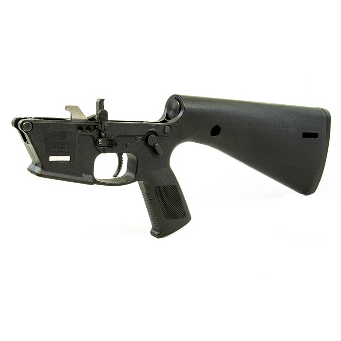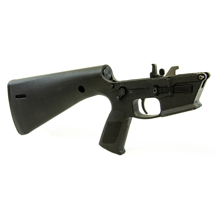 The KP-9 is a monolithic polymer 9mm Glock Mag Compatible AR15 style receiver made from injection molded 30% glass filled nylon incorporating the buttstock, buffer tube, pistol grip, and trigger into the receiver design as integral components. This manufacturing process offers several advantages, such as lighter weight compared to similarly configured receivers, lower cost to similarly configured receivers Features Include: Compatibility with most common 9mm AR15 uppers and lower parts kits Compatible with Glock 17 and 19 Magazines Flared magwell to make reloads under stress easier to perform. A1 Length 13” Length of Pull (LOP) Buttstock to fit a wide range of shooters MLOK Slots at rear of stock for sling attachment points or run a strap through it for simple sling attachment Holes at the front of the stock for QD socket inserts for more sling attachment options Improved grip for comfortable use “Winter” Trigger Guard Mil-Spec FCG Lowers Include: Mil-Spec Fire Control FCG and Optimized Selector 5.4oz 9mm Heavy Buffer and Spring Bolt Catch Assembly* Pivot and Take Down Pins KP-9 Selector Detent Buttplate 5/64" Roll Pin to Retain Buffer Detent Ambi Glock Magazine Catch Assembly Adjustable 9mm Steel Ejector Technical Information The KP-9 receiver uses a Carbine buffer and spring. Do NOT use anything other than standard 9mm carbine buffers and round springs or the JP SCSS in the KP-9. The Take Down and Pivot Pins have the detents built into them, eliminating the spring and detent holes in the lower increases durability. The buffer detent (should you choose to use it) is held in place with a 5/64” Roll Pin The KP-9 is compatible with all Mil-Spec Fire Control Groups The KP-9 is compatible with cassette style match triggers including the KE Arms SLT units. The retention system of these triggers with D-Clips in the bushings to retain the fire control pins makes them better suited for use in the KP-9 than other designs that require captured pins.* The hammer pin area is wider for durability; Standard AR15 hammer pins can still be used but we offer a longer hammer pin for customers preferring a flush pin for aesthetic reasons. Safety selector spring and detent load from the top and then the selector is slid over them. Standard selectors can work but removing them can be particularly difficult. We recommend the use of our optimized mil-spec selector or optimized ambi selector to make removal easier. Follow our assembly guide for further instructions. The KP-9 is compatible with 9mm blowback systems with a 5.4oz carbine buffer minimum. Use heavier buffers as long as your gun can cycle reliably. Failure to use this minimum buffer weight can damage the lower. CMMG Radial Delayed Blowback Uppers will need modifications to the ejector to work. *Last Round Bolt Hold Open Last Bolt Hold Open Function is dependent upon the upper you use. The standard bolt catch does not interface with the Glock Magazine follower. Some uppers such as those from Gibbz Arms and New Frontier Armory have linkage systems that interface with the Glock magazine followers and extend back to the bolt catch. Without one of these uppers, the bolt catch can still be manually actuated to verify a clear firearm or make inserting a magazine with high tension easier. Cerakoting: If you intend to have your KP-9 Cerakoted we recommend you use We Plead the 2nd as they are experienced in coating polymer receivers and have our authorization. The bake should be done at low temperatures (<190 Degrees F) and with an upper in place to prevent warping. Known Compatible Match Triggers KE Arms SLT-1 KE Arms SLT-2 KE Arms RTS-1 REKLUSE