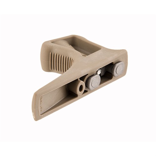 Designed to complement modern shooting grips, the Kinesthetic Angled Grip (KAG) uses a biomechanically efficient forward rake to create an interface for positive retention and joint relief to the wrist, elbow, and shoulder, allowing for smooth weapon manipulation without substantial increase to the girth of the weapon system. Textured on both front and back, the profile of the KAG creates a channel for consistent and positive engagement which translates directly into improved efficiency in weapons manipulation and target to target transitions.
