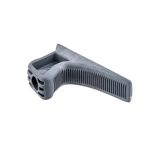 Designed to complement modern shooting grips, the Kinesthetic Angled Grip (KAG) uses a biomechanically efficient forward rake to create an interface for positive retention and joint relief to the wrist, elbow, and shoulder, allowing for smooth weapon manipulation without substantial increase to the girth of the weapon system. Textured on both front and back, the profile of the KAG creates a channel for consistent and positive engagement which translates directly into improved efficiency in weapons manipulation and target to target transitions.