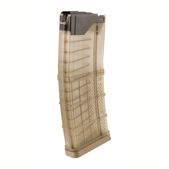 L5AWM TRANSLUCENT FLAT DARK EARTH 30-RD MAGAZINES ovat edistyksellisiä sotilasstandardin mukaisia patruunalaatikoita, jotka yhdistävät metallin ja polymeerin parhaat puolet. Nämä kevyet, muovatut polymeeripatruunalaatikot kestävät kovaa käsittelyä ja äärimmäisiä olosuhteita taktisten operaatioiden aikana, mukaan lukien kuumuus ja jatkuvan automaattitulituksen aiheuttama isku.