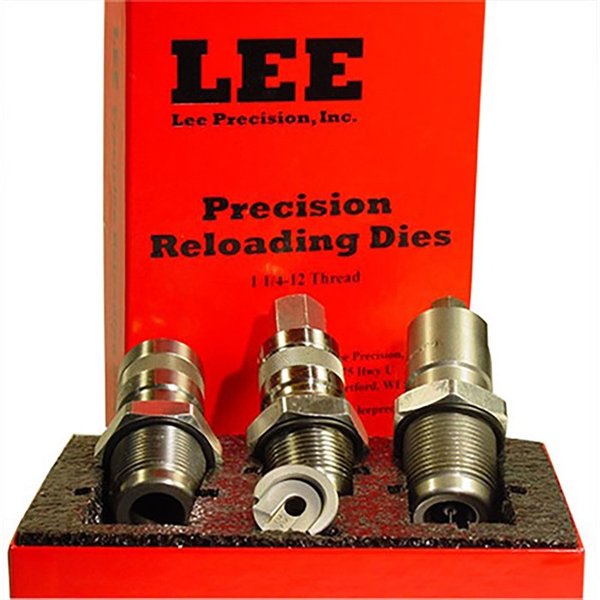 734307909291 Lee Large Series 3-die Set sisältää täyspitkän koon säädön, luodin istutussäätimen, tehtaalla puristussäätimen, hylsyn pidikkeen, jauhemittarin ja ohjeet. 1-1 ¼ X12 kierteet.Toimitusaika noin 2-4 viikkoa.