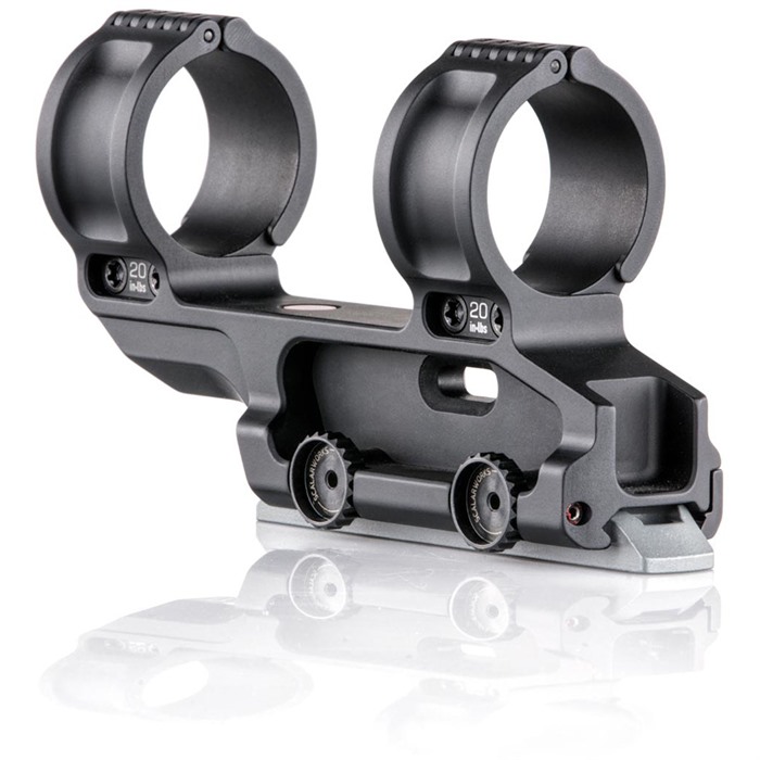 LEAP/09 State of the art 34mm scope mounts. Designed for shooters who want the lightest, stiffest, and easiest to use quick-detach scope mount possible. The LEAP/09 base incorporates different structural elements to maximize overall performance. A large diameter tubular section up front to resist torsion from side impacts, and a very wide I-beam bridge in the rear to resist recoil induced oscillations. Every Leap mount is CNC milled from 7075-T6 Aluminum billet, which has vastly superior mechanical properties to 6061-T6, and is used where ultimate strength and durability outweigh cost considerations. ViseRing™ Designed from the ground up to be lighter, lower-profile, and easier to use than traditional split rings. A low-profile design doesn't get in your way of viewing or manipulating your scope's adjustment turrets. A pair of tapered CNC machined screws lock into the base, bolstering structural rigidity. Wider than competing designs, providing more surface area to safely and securely hold your scope. A high-strength, multi-link hinge eliminates the uncertain and tedious setup required by split rings. LEAP mounts have no protruding levers, bolts, or knobs to rap your knuckles, or get caught on clothing, gear, and surroundings.