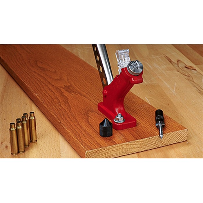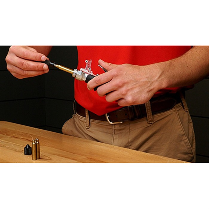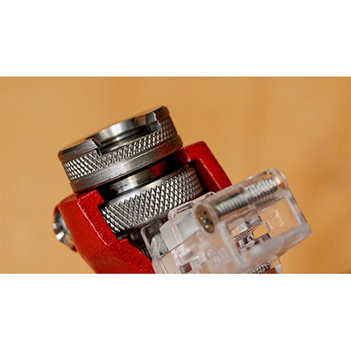 Tämä adapteri pitää messingin paikallaan lyhentämisen aikana oikeaan pituuteen tai viisteiden tekemisessä patruunan kaulan sisä- ja ulkopuolelle. Se mahdollistaa nopean vaihdon eri messinkikappaleiden välillä ilman, että sinun tarvitsee löysätä kierteistä shell holderia joka kerta.