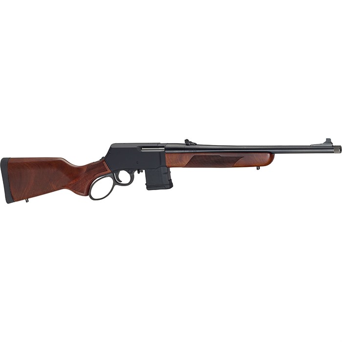 HENRY LEVER ACTION SUPREME RIFLE 300 AAC BLACKOUT LEVER ACTION RIFLE For more than 150 years, the lever action platform has been tweaked and tuned in the pursuit of sporting perfection. Incremental progress was made in small steps, thanks to advancements in materials, engineering know-how, and manufacturing capabilities, but until now, the action has remained relatively unchanged. Starting with a blank sheet of paper and all the cutting-edge manufacturing machinery one could wish for, Henry’s world-class design engineers set out to rewrite the script for this time-honored action. The result? As the world’s leading name in lever actions, Henry Repeating Arms is ushering in a new era with the Lever Action Supreme Rifle. Meticulously engineered from the ground up for unrivaled performance in all areas, this rifle is a testament to pushing boundaries and exploring what’s possible while staying true to what makes the lever action so endearing. With a slew of patent-pending innovations on board, the Lever Action Supreme delivers best-in-class accuracy, reliability, and safety. At its heart lies a patent-pending quad bar linkage and slider crank mechanism that propels the already famously smooth Henry action to new heights. This action drives a bolt with a multi-lug rotating face for positive lockup, extraction, and ejection. Thanks to the internal hammer design, all moving parts are sealed off from the elements when the action is closed to keep out dust, dirt, and debris and keep the rifle running like a top while it’s by your side out in the field. Setting a new standard for lever action accuracy, the Lever Action Supreme Rifle (or LASR for short) sports a free-floated blued steel barrel fully capable of delivering sub-MOA groups, depending on the cartridge and conditions. The .223/5.56 variant features an 18″ barrel and the .300 BLK version opts for a shorter 16.5″ barrel. The Supreme’s match-grade 4-pound trigger ensures consistency from shot to shot and is user-adjustable with a 1-pound range using the included hex key. Due to the lack of a gas system, lever actions make fantastic suppressor hosts, so the muzzle is threaded to accept the device of your choosing. To get on target and stay on target, we’ve also upped the game with our iron sights. The patent-pending trapezoidal rear sight is fully adjustable for windage and elevation using the same tool that adjusts the trigger pull weight. A steel front blade completes a natural, precise, and quick-to-acquire sight picture. Should you opt for a magnified or digitally assisted sight picture instead, the aerospace-grade aluminum receiver is drilled and tapped to accept an optics base. When it comes time for a deep clean, familiar punch pin disassembly makes maintenance a snap. The Supreme features genuine American Walnut stocks cut with ultra-precise diamond checkering to ensure it feels and points like a Henry should. For carry and comfort afield, factory-sling swivel studs are pre-installed along with a solid rubber recoil pad. Innovation continues with the ambidextrous controls, including the tang safety switch and patent-pending magazine release. Reaching your thumb up to decock the hammer is second nature to those with prior experience with the Henry product catalog, so the safety switch’s location ensures you don’t have to teach an old dog new tricks. SPECIFICATIONS: Action Type: Lever Action Caliber: 300 AAC Blacout Capacity: 10 Rounds Barrel Length: 16.5" Barrel Type: Free-Floated Round Blued Steel Rate of Twist: 1:7 Overall Length: 36.65" Weight: 6.43 lbs. Receiver Finish: Hard Anodized Black Rear Sight: Fully Adj. Trapezoidal Front Sight: Blade Scopeability: Drilled & Tapped Scope Mount Type: Weaver 63B Stock Material: Genuine American Walnut Length of Pull: 14" Safety: Tang Safety Switch Best Uses: Target/Hunting Embellishments/Extras: Sling Swivel Studs, Threaded Barrel (5/8x24), Match-Grade Adjustable Trigger, Sight and Trigger Adjustment Tool Included.