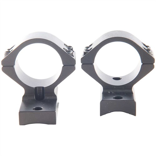 SPECS: 7000 series aluminum, black, anodized, matte finish. Accepts 1" dia. scopes, unless otherwise listed in fits column for 30mm dia. scopes. Height from bottom of ring to top of receiver: Low - .400" (10.1mm), Med - .500" (12.7mm). High - .640" (16.3mm), X‑High - .740" (18.8mm). Approx. weight 2.1 oz. (59 g). Some heights vary, see chart below. Rem. 700 also fits 721/722/725 and 40X models. Rem. Model Seven fits receivers with four screw holes. Savage AccuTrigger fits round top centerfire receivers with AccuTrigger. Win. 70 fits .860" rear hole spacing only.