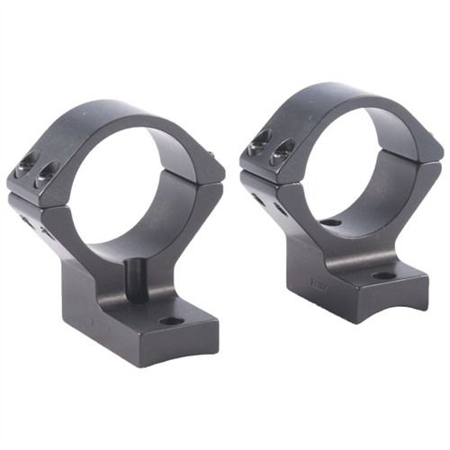 SPECS: 7000 series aluminum, black, anodized, matte finish. Accepts 1" dia. scopes, unless otherwise listed in fits column for 30mm dia. scopes. Height from bottom of ring to top of receiver: Low - .400" (10.1mm), Med - .500" (12.7mm). High - .640" (16.3mm), X‑High - .740" (18.8mm). Approx. weight 2.1 oz. (59 g). Some heights vary, see chart below. Rem. 700 also fits 721/722/725 and 40X models. Rem. Model Seven fits receivers with four screw holes. Savage AccuTrigger fits round top centerfire receivers with AccuTrigger. Win. 70 fits .860" rear hole spacing only.