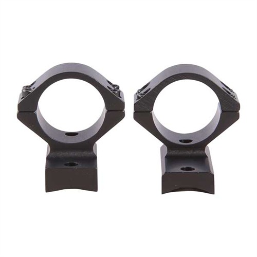 SPECS: 7000 series aluminum, black, anodized, matte finish. Accepts 1" dia. scopes, unless otherwise listed in fits column for 30mm dia. scopes. Height from bottom of ring to top of receiver: Low - .400" (10.1mm), Med - .500" (12.7mm). High - .640" (16.3mm), X‑High - .740" (18.8mm). Approx. weight 2.1 oz. (59 g). Some heights vary, see chart below. Rem. 700 also fits 721/722/725 and 40X models. Rem. Model Seven fits receivers with four screw holes. Savage AccuTrigger fits round top centerfire receivers with AccuTrigger. Win. 70 fits .860" rear hole spacing only.