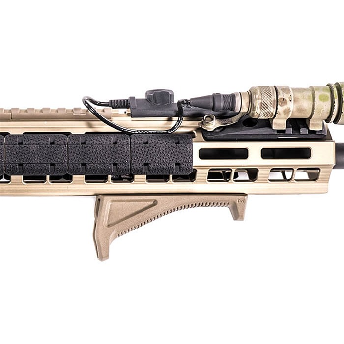 The Magpul M-LOK AFG (Angled Fore Grip) is the result of research and refinements done to the original AFG and AFG-2. By integrating the direct-attach M-LOK mounting system with minimalist construction we were able to produce a high strength grip that only weighs 1.2 ounces, including hardware. Allowing for a wider range of mounting location options, the M-LOK AFG is ¾" shorter than the AFG-2 while maintaining a similar gripping surface area. Even though the M-LOK AFG is more compact than its predecessors it continues to take into account natural body mechanics to provide a comfortable and stable user interface that reduces fatigue and allows for more precise weapon control. By positioning the shooter's hand high on the centerline of the bore, unlike conventional vertical fore grips, the M-LOK AFG helps mitigate recoil and control the weapon to facilitate faster, more accurate follow-up shots. All hardware necessary for attachment directly to M-LOK Slots on either aluminum or polymer hand guards and forends is included.