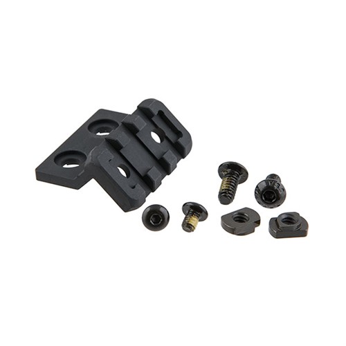 M-LOK Offset Light/Optic Mount, valmistettu alumiinista, tarjoaa käyttäjälle mahdollisuuden kiinnittää asevalaisimia tai optiikoita sekä 11 että 1 o'clock -asemiin M-LOK-yhteensopivissa käsikahvoissa.