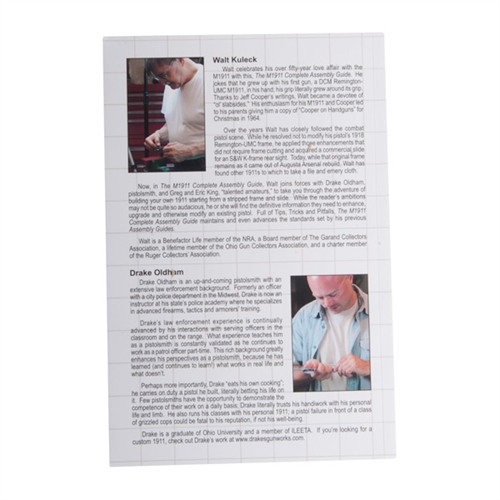 Kuvaus: 250 sivua. 6" x 9". Pehmeäkantinen. Yli 400 valokuvaa ja piirrosta. Tämä opas on täydellinen kumppani The M1911 Complete Owner’s Guide -kirjalle, ja se vie sinut vaihe vaiheelta läpi mukautetun 1911-pistoolin rakentamisen komponenttiosista tai varaston päivityksen, joka muuttaa sen tarkaksi kilpailupistooliksi.