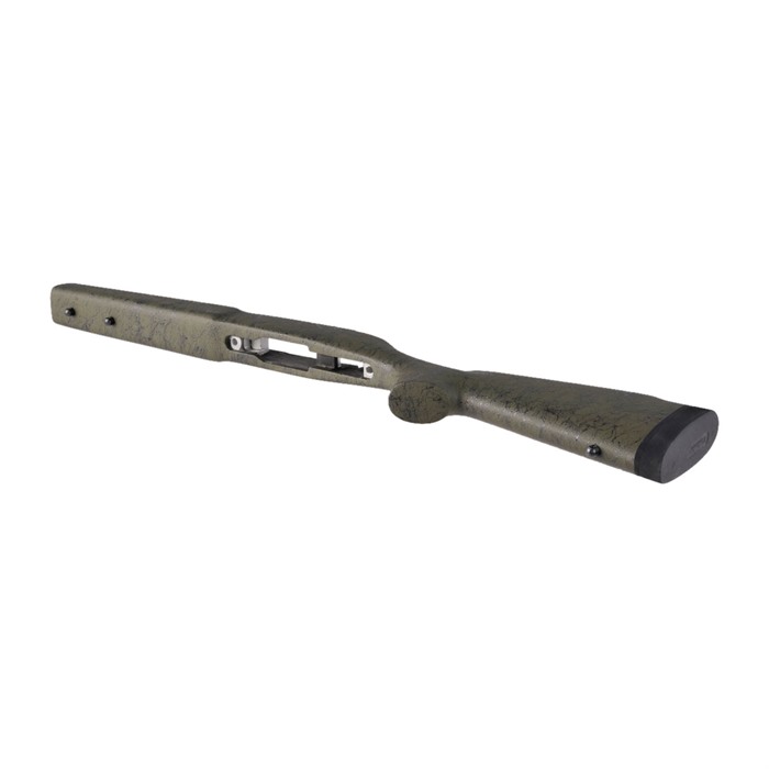 HOWA MINI ACTION M40 STYLE Drop in fit for Howa Mini Action with factory detachable mag and heavy or sporter barrel contour full length aluminum bedding system that is computer designed and CNC machined from aircraft grade 6061-T6 aluminum. The aluminum block extends through the forearm to add strength and stiffness and also has an aluminum "tail piece" from the bedding block through the grip area to add rigidity to strengthen the stock. Designed to be "free floated." M40 varmint/tactical stock with no cheekpiece and no checkering. 1-inch Pachmayr Decelerator recoil pad. Two front sling studs. One rear sling stud. 13.5-inch length of pull. Forearm width 2.05-inch tapers to 1.825-inch. Overall stock length 30.5-inch. Approximately 2.0 pounds.