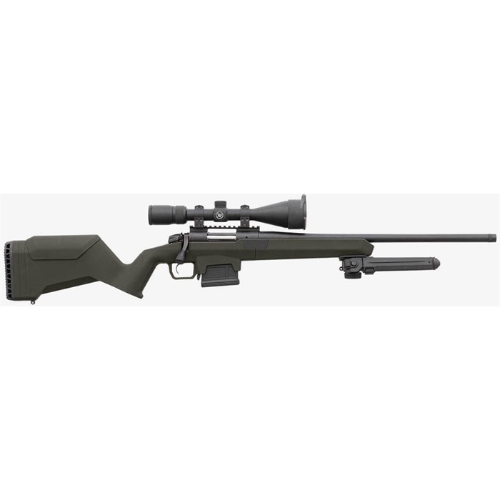 MAGPUL HUNTER LITE STOCK FOR REMINGTON 700 SHORT ACTION The Hunter Lite – Remington 700 Short Action is a purpose-built hunting stock designed for Remington 700 rifles and Remington 700-pattern rifles chambered in short-action calibers. The Hunter Lite streamlines Magpul’s original Hunter Stocks to reduce the weight and slim the dimensions, providing a fully featured upgrade that’s lighter and more maneuverable during their outdoor pursuits. The result is a stock that weighs almost 25% less and has a forend that’s almost 25% narrower than their original Hunter 700 Stock. The Hunter Lite Stock– Remington 700 Short Action is convertible to both right and left-handed rifles by simply swapping out the included inserts in the stock. Receiver support is provided by an extruded aluminum V-bedding block and reinforced steel pillars, enhancing consistency and accuracy It’s strength and firing dependability are supported by the extruded aluminum V-bedding block that features reinforced steel pillars to prevent compression and deformation while shooting. Featuring enhanced ergonomics, the buttstock and forend have integral sling swivel studs for use with a variety of slings and bipods. The buttstock includes removable half-inch spacers to enable LOP adjustments and snap-on cheek risers to create adjustable comb height. An enlarged trigger guard allows comfortable use with gloves and easy access to the ambidextrous magazine release. The magazine well features stamped steel over-insertion tabs to ensure repeatable, proper presentation of the loaded magazine. The forend also features multiple M-LOK® slots to accommodate your choice of M-LOK accessories and it’s compatible with barrel profiles up to Medium Palma. Made in the USA. SPECIFICATIONS: Platform: Remington® 700 Compatibility: Short-action Remington 700 rifles and Remington 700-pattern receivers with barrel contours up to Medium Plama. Because of the integral magazine well, it is not compatible with Remington hinged floor plates. Butt-Pad Dimensions: 1.5 x 4.9 in. Length of Pull: 13-15 in. LOP using included spacers Weight : 2.4 lbs Width of Butt, max: 1.5 in. (no Riser) - 1.75 in. (with Riser) Width of Stock, max: 1.75 in. *NOTE: Compatible with aftermarket barrel profiles up to a Medium Palma (0.920" dia. 5.50" forward of the breech) Accepts ALL factory Remington barrels including VTR triangular barrel contours Accepts most factory and aftermarket triggers