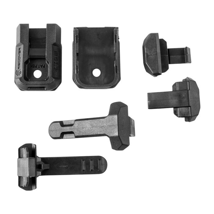The MAG Clip System allows you to attach multiple accessories to your magazine such as a clip and a rail to an enhanced base plate. The system includes 1 set – mag base plate adapter, mag clip, base plate cover. Once the new Recover base plate is installed, the user can immediately swap between the various included accessories. The Mag Clip allows for multiple mag carrying options without the need for a pouch making it one the most concealable and convenient ways to carry your magazine. Immediately swap between the multiple included accessories Mag clip allows for multiple mag carrying options without the need for a pouch Available in multiple magazine calibers No more carrying Glock magazine holders or holsters Remove existing magazine base plate Install the new supplied base plate Slide on optional clip, rail, or cover till snapped into place MC17 will only work on G19 if using a 17 round magazine. They will not work on the 15 round magazine. MC17 2 SETS Mag Clip base set includes: 2 x G17/19 Mag base plate adapter 2 x Mag clip 2 x Base plate cover