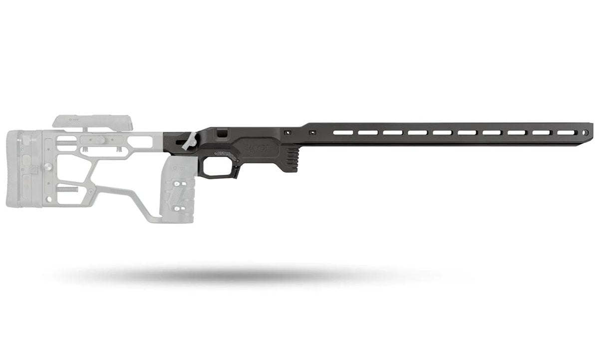 The adjustable M-LOK Thumb Rest ensures precise, comfortable support. The magwell and latch are tunable to eliminate slop and work flawlessly with premium actions.