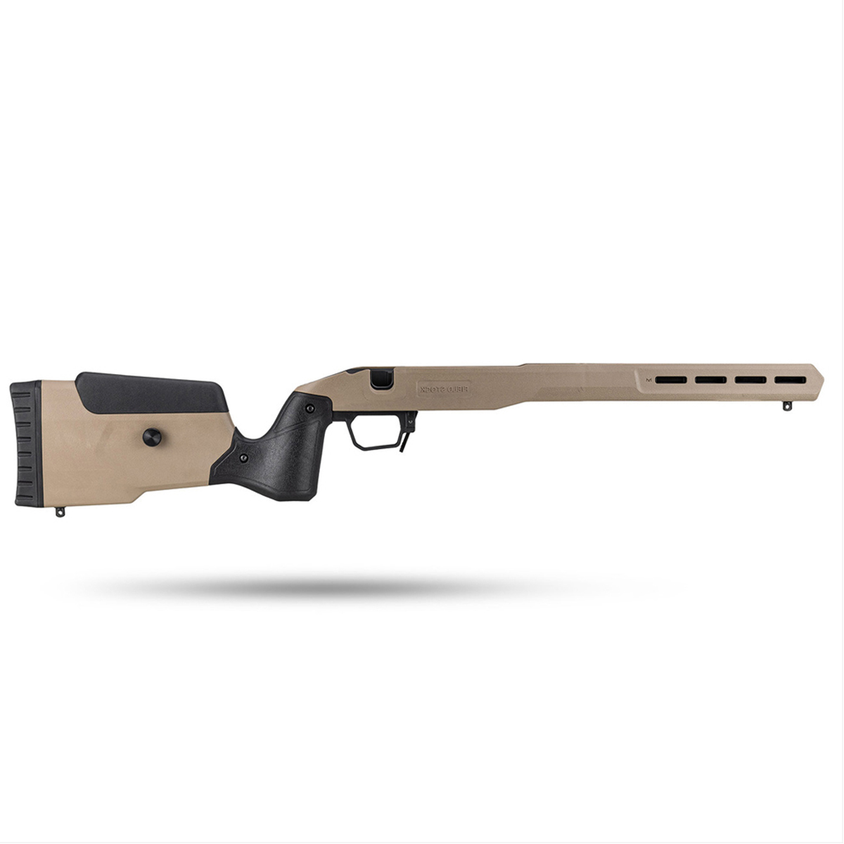 Lisättyjen kantohihnan kiinnitysruuvien ja M-LOK etuosan ansiosta sinulla on vapaus kiinnittää tarvittavat varusteet tehtäväsi suorittamiseksi. Kiinnitä kantohihna ja bipodi onnistuneeseen takamaastometsästykseen tai asetu piiloon ARCA-raudan ja kolmijalan kanssa tarkkuusammuntaa varten. AICS-lippa-yhteensopivuus varmistaa, että sinulla on aina mukanasi oikea määrä ammuksia käsillä olevaan tehtävään.