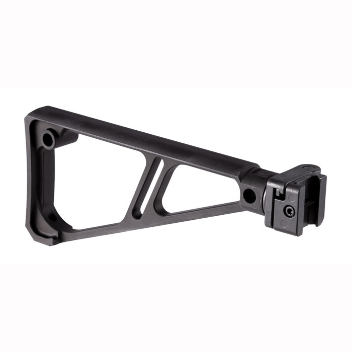 A fan-favorite stock just got an upgrade. The Side Folding Extruded Stock from Midwest Industries takes design cues from traditional AK-47 stocks, adding on modern features and functions for enhanced usability. This all-in-one folding stock is a game-changer for any rifle with a Picatinny rail–not just the AK-47. The skeletonized body and ergonomically curved top surface create a comfortable operating experience, while the rigid triangular design with a tight lockup promises the stability of a fixed stock. And when it’s time to head home from the range, the compact folding action makes storage and transportation a breeze. Heavy-duty side-folding mechanism constructed from 4140 heat treated steel Full-length locking lug for maximum strength Solid positive lock up in both positions Steel clamp with large surface engagement Can be configured to right- or left-folding Curved top surface for a comfortable cheek weld Features 5 QD sling attachments