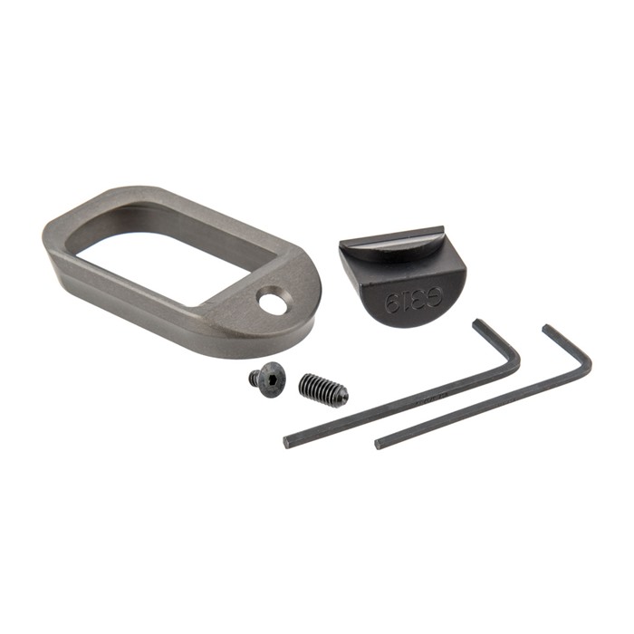 Minimalist magwell designed for EDC and CCW use. Machined with a bevel along the sides that aids in shelfing the hand up and into the pistol. The magwell aids the user to guide the magazines into the magazine well. Compatible with various base pads (OEM, 10-8 Performance, Vickers, Taran Tactical, Arredondo, and Henning). Includes a grip plug, magwell, set screws and allen wrenches for a quick installation.