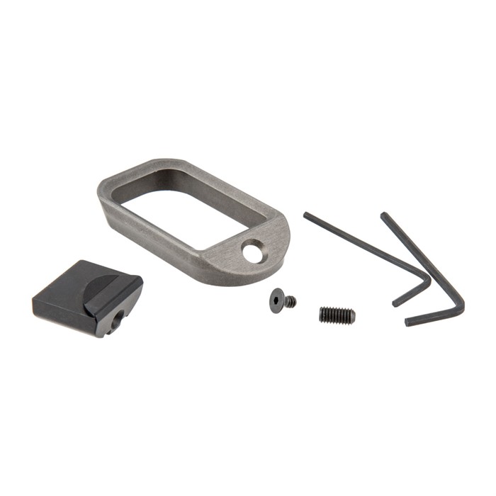 MINIMALIST MAGWELL WITHOUT BACKSTRAP FOR GLOCK® GEN 4 Minimalist magwell designed for EDC and CCW use. Machined with a bevel along the sides that aids in shelfing the hand up and into the pistol. The magwell aids the user to guide the magazines into the magazine well. Compatible with various base pads (OEM, 10-8 Performance, Vickers, Taran Tactical, Arredondo, and Henning). Includes a grip plug, magwell, set screws and allen wrenches for a quick installation. DISCLAIMER: “GLOCK” is a federally registered trademark of GLOCK, Inc. and is one of many trademarks owned by GLOCK, Inc. or GLOCK Ges.m.b.H. Neither Brownells nor this site are affiliated in any manner with, or otherwise endorsed by, GLOCK, Inc. or GLOCK Ges.m.b.H. The use of “GLOCK” on this page is merely to advertise the sale of GLOCK pistols, parts, or components. For genuine GLOCK, Inc. and GLOCK Ges.m.b.H. products and parts visit www.glock.com.