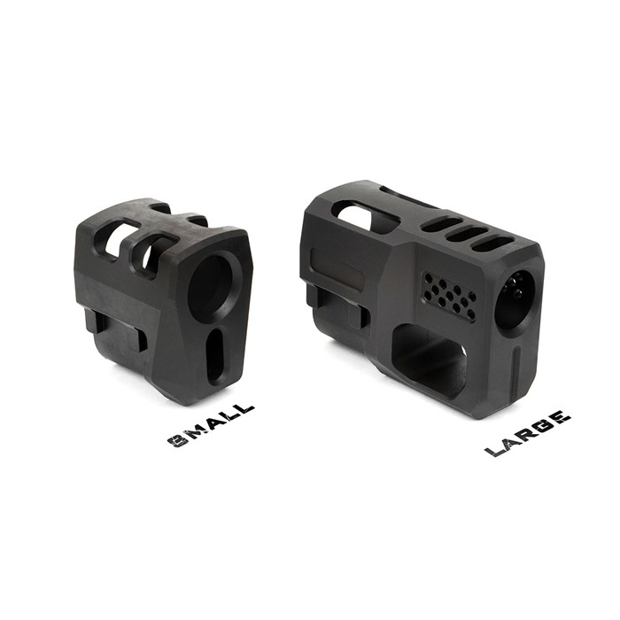 COMPATIBILITY: Only with the Standard length Strike Modular Chassis (SMC) - ALPHA setup using a SIG SAUER P320 3.9” slide/barrel The Comp for Strike Modular Chassis (SMC) is a seamless design direct mount to chassis compensator in two length options, small and large. Required for SMC setup using a SIG SAUER P320 3.9” slide/barrel. No threaded barrel needed which eliminates the need to buy an additional barrel if you do not have it and keeps your setup 50 state legal. The widened bore is designed to reduce baffle strikes and keyholing rounds. No permanent modification of your weapon required which makes it an easy installation. Only one (x1) thumbscrew is required to install or remove the SMC Compensator. Made from S45C steel with Quench Polish Quench (QPQ) process finish. Quickly and simply mitigate felt recoil and reduce muzzle rise with the Comp for Strike Modular Chassis (SMC). NOT COMPATIBLE: With SIG SAUER P320 4.7” (or 3.6") slide/barrel on Standard length SMC ALPHA chassis With any SIG SAUER P320 threaded barrels Package Contents: x1 Comp for Strike Modular Chassis (SMC) - Small or Large x1 Thumbscrew x1 O-ring Product Features: SMC direct to chassis mount seamless design Required for SMC setup with 3.9” P320 slide/barrel setup Mitigate felt recoil and reduce muzzle rise Eliminates the need for threaded barrels. 50 State Legal Widened bore to reduce baffle strikes and keyholing rounds Easy installation with only one thumbscrew Made from S45C steel with Quench Polish Quench (QPQ) process finish COMPATIBILITY: Only with the Standard length Strike Modular Chassis (SMC) - ALPHA setup using a SIG SAUER P320 3.9” slide/barrel NOT COMPATIBLE: With SIG SAUER P320 4.7” (or 3.6") slide/barrel on Standard length SMC ALPHA chassis With any SIG SAUER P320 threaded barrels DISCLAIMER: “SIG SAUER”, "SIG", "P320" is a federally registered trademark of SIG SAUER, Inc. and is one of many trademarks owned by SIG SAUER, Inc. Neither Strike Industries Inc. nor this site are affiliated in any manner with, or otherwise endorsed by, SIG SAUER, Inc. The use of “SIG SAUER” on this page is merely to advertise the sale of SIG SAUER pistols, parts, or components. -CALIFORNIA PROPOSITION 65 WARNING:- WARNING: This product contains chemicals known to the State of California to cause cancer and birth defects or other reproductive harm. For more information: www.P65Warnings.ca.gov