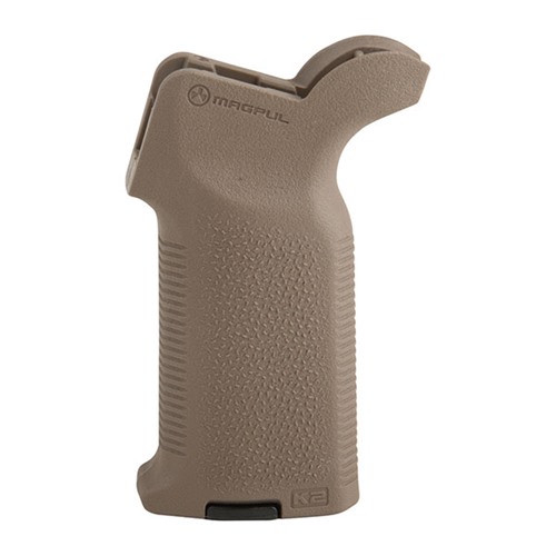 The MOE-K2 is a drop in upgrade for AR15/M4 pistol grips with a more vertical grip angle optimized for short LOP weapons, such as PDW (Personal Defense Weapons) configurations. It has an aggressive texture for positive weapon control and is compatible with Magpul Grip Cores for storage customization. This grip will function properly with 7.62 NATO AR10/SR25 style of rifles but, depending on the make of the rifle, may or may not leave a gap between the 'beaver tail' and the receiver. This gap is purely aesthetic and will not affect function.