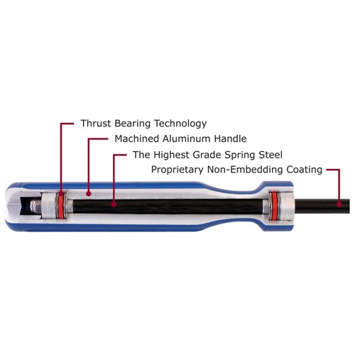 Handle on varustettu laakereilla kummassakin päässä, mikä mahdollistaa tangon pyörimisen sujuvasti ja pitää jagin tai harjan täysin kosketuksessa riflingin kanssa. Väriin koodatut kahvat auttavat sinua varmistamaan, että valitset oikean kaliiperin tangon. Jokaisessa tangossa on pehmeä alumiininen ferrule kierrettyssä päässä, joka auttaa suojaamaan patruunapesää tai suuta vaurioilta.