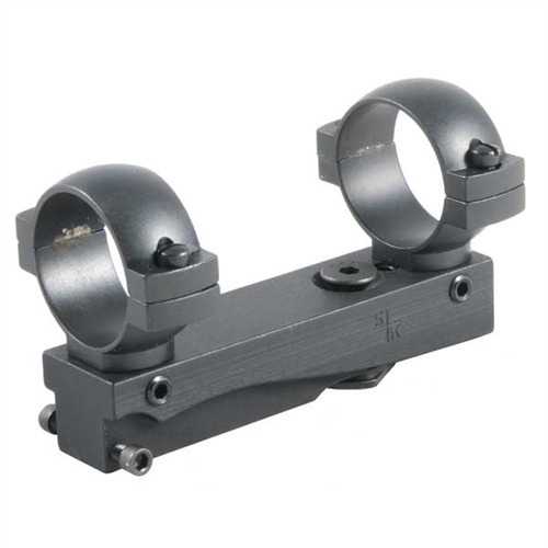 No drilling, tapping or bolt modifications. Aluminum base replaces the rear sight, and accepts a long eye relief, scout or handgun scope. Includes S&K, horizontally split steel rings.