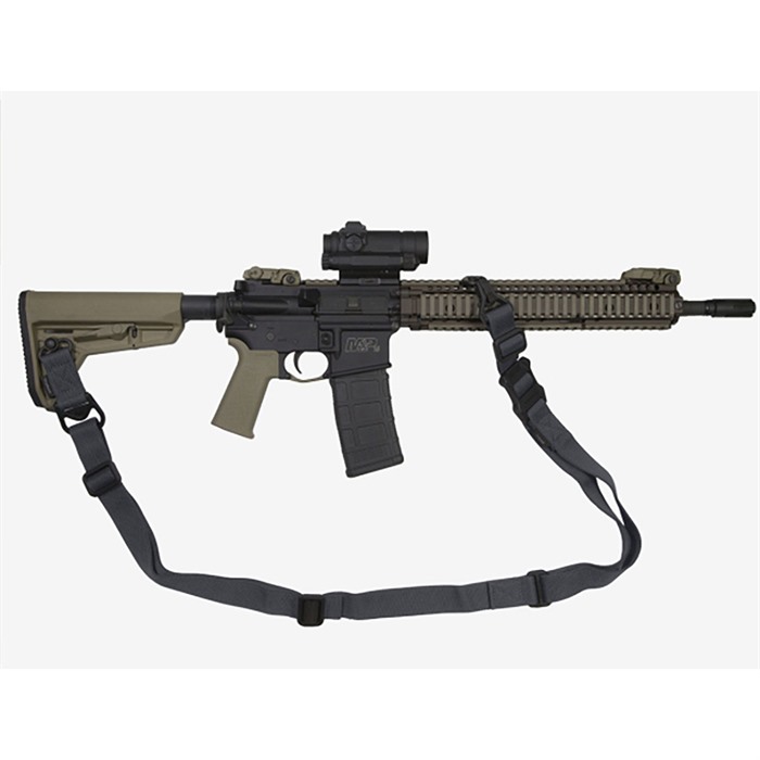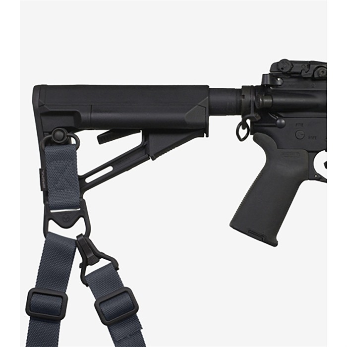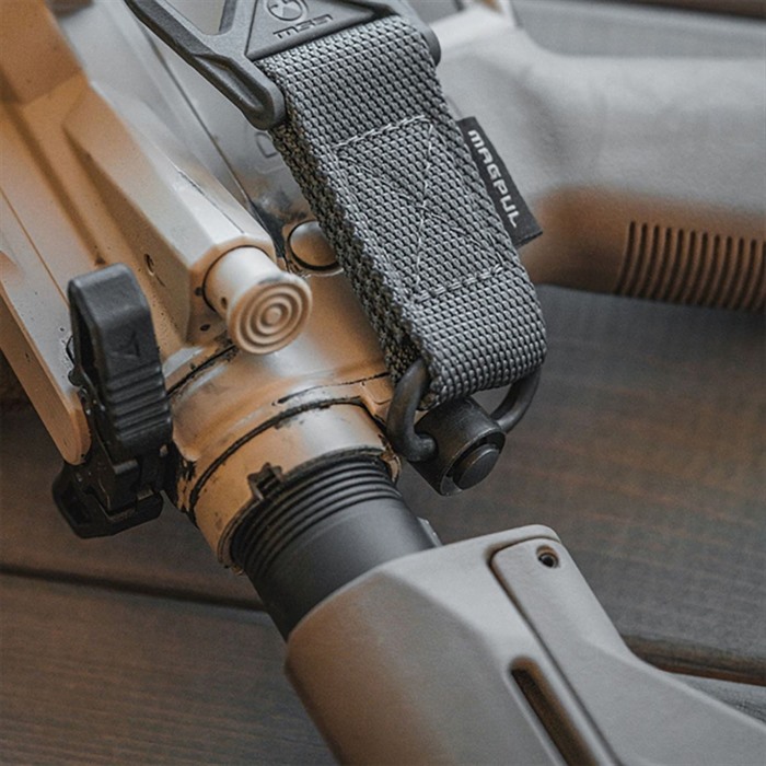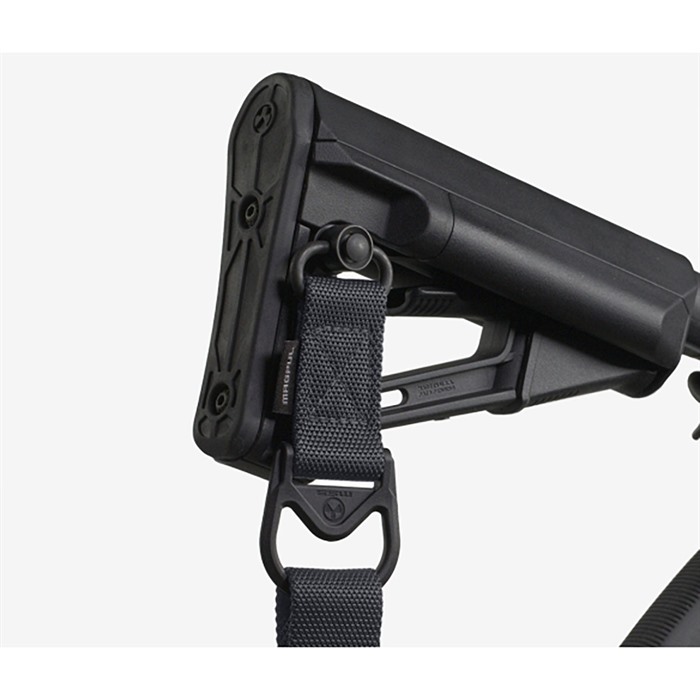 Combine with the MS1® Sling and Paraclip™ to provide two to one-point convertibility. An optional Paraclip shackle allows for easy transition and provides weapon quick-release capabilities in an emergency Manganese-phosphate finished steel and reinforced polymer hardware with custom snag-free high durability 1-1/4" webbing. Made in the USA. DURABLE CONSTRUCTION Lightwight yet durable hardware, made with hardened steel and heavy-duty polymer Custom 1-1/4" wide nylon webbing material is strong, wear resistant and anti-chafing for user comfort Colored webbing has Near Infrared (NIR) treatment to reduce IR signature ONE TO TWO-POINT CONVERSION Use the MS1 sling and additional paraclip to provide transition between one and two-point configuration Heavy-duty, manganese-phosphate finished push-button QD Sling Swivel for one-point attachment QD Cups & Sockets SLING ASSEMBLY MOUNTING REAR - Works with receivers, end plates, and buttstocks that have a push-button QD socket for one-point attachment. FRONT - Using optional Paraclip™, compatible with the Magpul RSA®, MSA®, and Forward Sling Mounts, as well as many snap-hook style sling loops* and standard or QD sling swivels for use in two-point mode. * Snap-hook style sling loops with an inner diameter of at least 3/8" are required, but 9/16" and larger will provide full range of motion of the Paraclip™.
