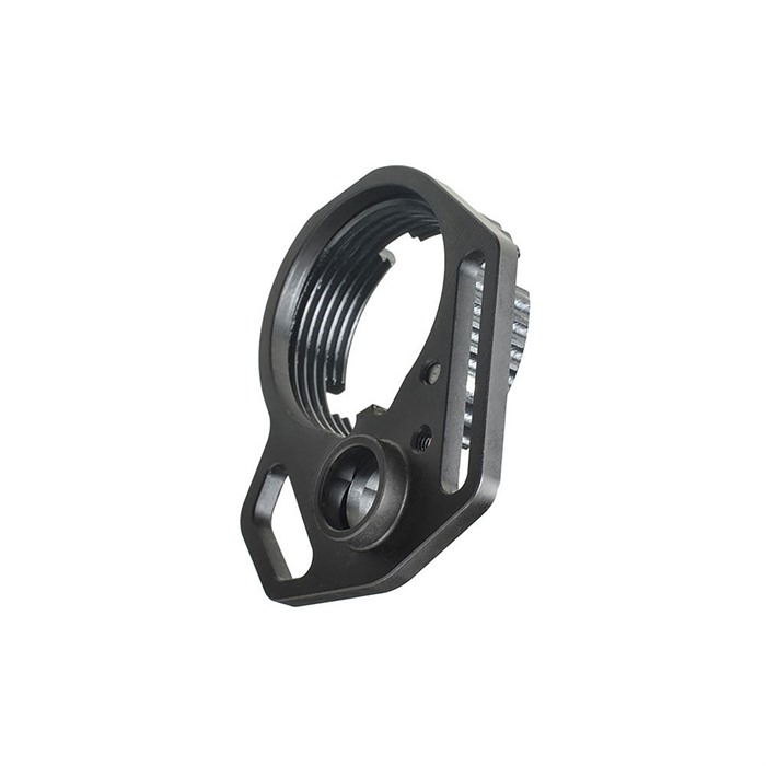 Strike Industriesin Multi-Function End Plate ja Anti-Rotation Castle Nut on suunniteltu päivittämään ja parantamaan usein unohdettua castle nut ja endplate -järjestelmää. Vaikka perinteinen endplate ja castle nut toimivat erinomaisesti vastaanottimen laajennuksen pitämisessä, castle nutin peening ei ole suotuisaa uudelleenrakentamiselle.