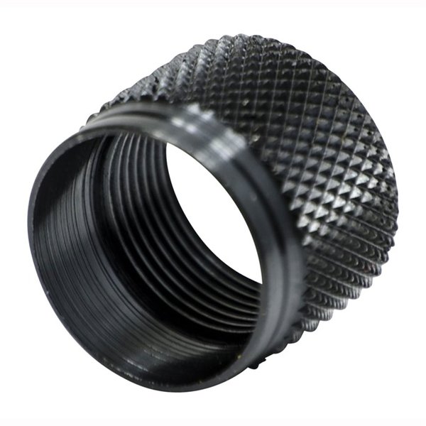 Knurlattu pinta GrovTec Muzzle Thread Protectorissa antaa tukevan otteen suojan asentamiseen tai poistamiseen sekunneissa.