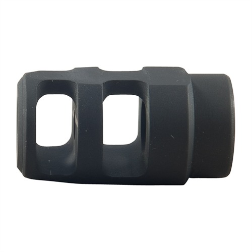 At just 1¾" long, this high-performance muzzle brake adds minimal bulk to the muzzle. Left and right side ports vent gasses evenly to reduce felt recoil and muzzle rise – enabling quicker, more accurate follow-up shots. Underside is solid to eliminate dust printing when shooting from the prone position.