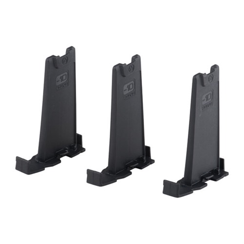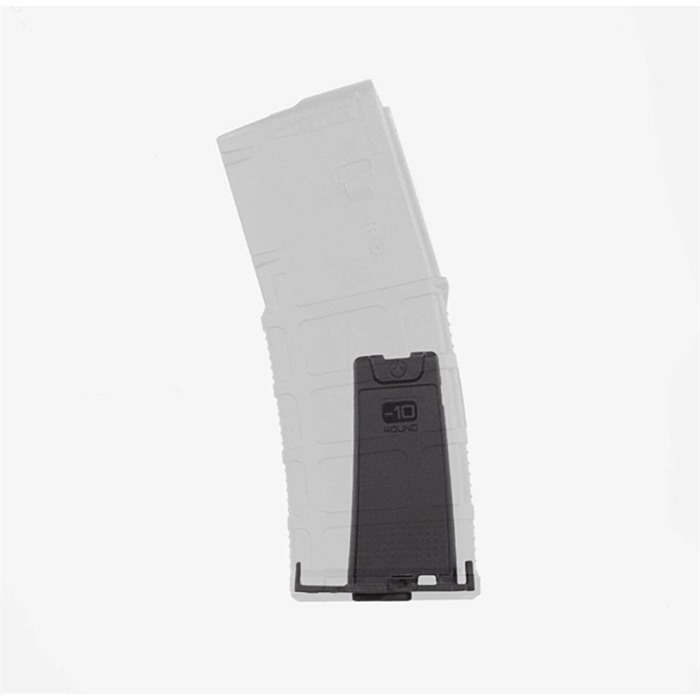 Hard polymer insert napsahtaa lattiapaneeliin rajoittaakseen kapasiteettia urheilu- tai metsästyskäyttöön. Asennus on helppoa eikä vaadi työkaluja, eikä se vaadi pysyvää muutosta lippaaseen. Huomioithan, että tämä rajoitin ei tee kiellettyä lippaita lailliseksi, koska kapasiteetin vähentäminen ei ole pysyvää. Minus 10 vähentää kapasiteettia 10 laukauksella.