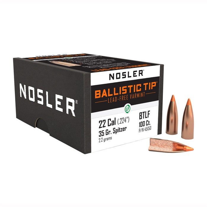 Meeting all lead-free hunting regulations, Nosler’s E-Tip™ bullet provides exceptional stopping power and peerless penetration over a broad spectrum of impact velocities, rivaling even the highest quality lead-core bullets. Upon impact, Nosler’s exclusive E² Cavity™ [Energy Expansion Cavity™] allows for immediate and uniform expansion, yet retains 95% weight for improved penetration. The bullet’s boat-tail configuration combined with the streamlined polymer tip assures long-range performance and ease of loading, making it a favorite amongst hand-loaders desiring a lead-free hunting bullet.