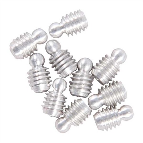 Brownells Shotgun Sight Kit “A” is truly one of the most unusual bargains ever offered a Sporting Goods Store or Professional Gunsmith in a practical, economical assortment of top-quality, replacement shotgun sights. The workmanship is superb, being done on the most modern and up-to-date machinery in the U.S.A. The sight globes are true spheres - not lop-sided as those you have found on many other sights at a higher price. The threads are cut onto the shank, and are clean, sharp and well-machined for the best possible fit. Shanks are threaded right up to the base of the bead so you can set the sight exactly onto the barrel. Your choice of sights in the Kit is extremely wide. There are 2 shank sizes, 3 bead sizes and 2 bead colors, giving you a total of 8 different sights to choose from so you can fit nearly any gun that comes into the shop. The two shank sizes are 3-56 and 6-48. Size 3-56 is one of the most widely used shanks in the industry and will fit most guns having threaded sight holes. The 6-48 shaft was chosen for the alternate size to be used when the original hole must be redrilled and tapped - or where there is no hole at all - because 6-48 is the firearm industry standard screw size, and every gunshop in the country will have the drill and tap on hand to make the new hole. Bead sizes are .067, .130 and .175, (the most popular sizes), giving your customer the choice of small, medium or large beads. In addition, each bead size is available in either Gold color - machined from finest brass; or White color - machined from high tensile aluminum alloy. Neither color will bleed at the heels, wear off with hard use, or chip and peel, as almost all enameled sights eventually do. Brownells Shotgun Sight Kit “A” comes to you very attractively displayed in a clear plastic counter case. Each individual sight number is in its own plainly identified box on a black tray. There are 10 sights of each number, giving you a total of 80 sights in the Kit - 40 Gold and 40 White - a complete inventory of top-quality shotgun sights with an absolute minimum of capital invested. Don’t pass up the opportunity to cash-in on the shotgun sight replacement market. For an unbelievably low investment you can have a complete, correctly balanced and assorted inventory of 80 superb shotgun sights. Don’t let yourself get caught short when you can have them on hand so easily. Order your Brownells Shotgun Sight Kit “A” today! Refill Sights for Kit "A" - Refills for the Shotgun Sight Kit “A” are single or 10-pak of sights of one number.