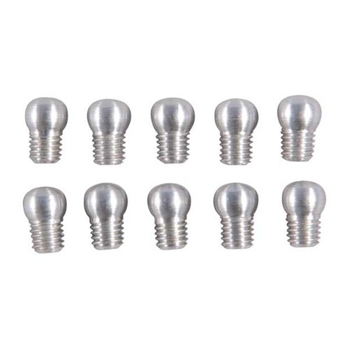 Brownells Shotgun Sight Kit “A” is truly one of the most unusual bargains ever offered a Sporting Goods Store or Professional Gunsmith in a practical, economical assortment of top-quality, replacement shotgun sights. The workmanship is superb, being done on the most modern and up-to-date machinery in the U.S.A. The sight globes are true spheres - not lop-sided as those you have found on many other sights at a higher price. The threads are cut onto the shank, and are clean, sharp and well-machined for the best possible fit. Shanks are threaded right up to the base of the bead so you can set the sight exactly onto the barrel. Your choice of sights in the Kit is extremely wide. There are 2 shank sizes, 3 bead sizes and 2 bead colors, giving you a total of 8 different sights to choose from so you can fit nearly any gun that comes into the shop. The two shank sizes are 3-56 and 6-48. Size 3-56 is one of the most widely used shanks in the industry and will fit most guns having threaded sight holes. The 6-48 shaft was chosen for the alternate size to be used when the original hole must be redrilled and tapped - or where there is no hole at all - because 6-48 is the firearm industry standard screw size, and every gunshop in the country will have the drill and tap on hand to make the new hole. Bead sizes are .067, .130 and .175, (the most popular sizes), giving your customer the choice of small, medium or large beads. In addition, each bead size is available in either Gold color - machined from finest brass; or White color - machined from high tensile aluminum alloy. Neither color will bleed at the heels, wear off with hard use, or chip and peel, as almost all enameled sights eventually do. Brownells Shotgun Sight Kit “A” comes to you very attractively displayed in a clear plastic counter case. Each individual sight number is in its own plainly identified box on a black tray. There are 10 sights of each number, giving you a total of 80 sights in the Kit - 40 Gold and 40 White - a complete inventory of top-quality shotgun sights with an absolute minimum of capital invested. Don’t pass up the opportunity to cash-in on the shotgun sight replacement market. For an unbelievably low investment you can have a complete, correctly balanced and assorted inventory of 80 superb shotgun sights. Don’t let yourself get caught short when you can have them on hand so easily. Order your Brownells Shotgun Sight Kit “A” today! Refill Sights for Kit "A" - Refills for the Shotgun Sight Kit “A” are single or 10-pak of sights of one number.
