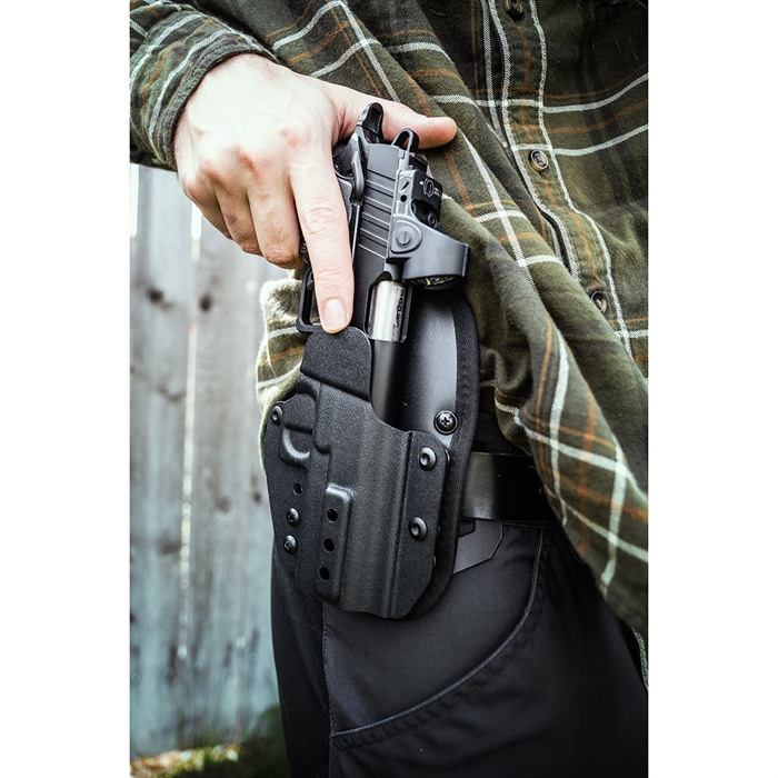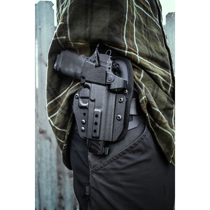 - Erinomainen pidätys: Tarjoaa turvallisen pidon kaikille täysikokoisille, kompakteille ja pienikokoisille pistooleille.