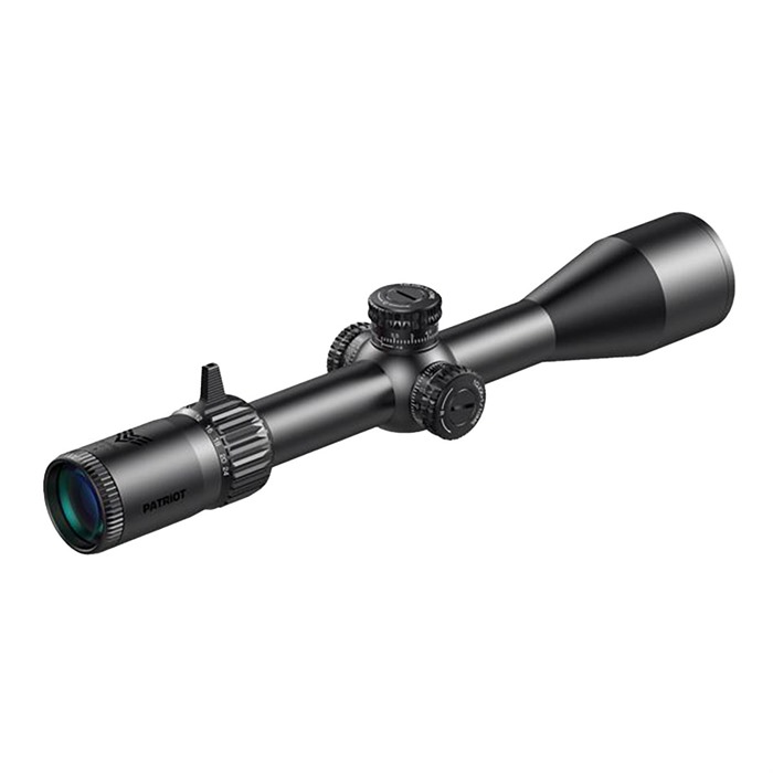 The Patriot delivers the clarity, ease of use, and durability your precision rifle deserves. The optimized internal design maximizes eye box and provides a flat, clear sight picture even at high magnifications. Choose from the included low- or high-profile Magnification Throw Fins to make instant field of view changes. The Sharpshooter FFP etched reticles are designed for accurate ranging and holdovers out to long range. Zero-resettable target turrets feature audible and tactile clicks. Choose between Sharpshooter MOA with 0.25 MOA per click adjustments, or Sharpshooter MRAD with .01 MRAD per click adjustments. The Patriot delivers worry-free use in hunting, tactical, or competition scenarios. Glass etched first focal plane reticles Zero resettable tactical turrets Adjustable parallax from 20 yards to infinity 90 MOA/26 MIL or total internal adjustment Includes short and tall magnification throw fins, flip up lens caps, scope cloth, and 3" sunshade.