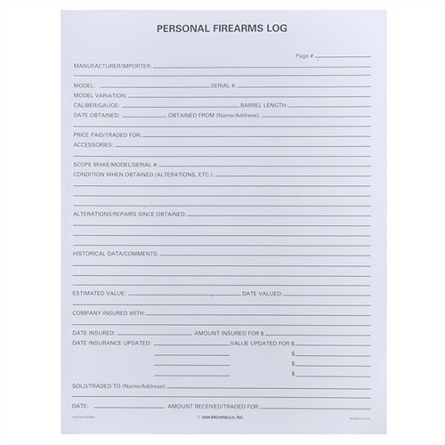 Keep all the info about each one of your guns together. Heavy paper folder has space for: usual data, plus, info on scope, sling, and alterations. Each folder comes with its own polypropylene page protector.