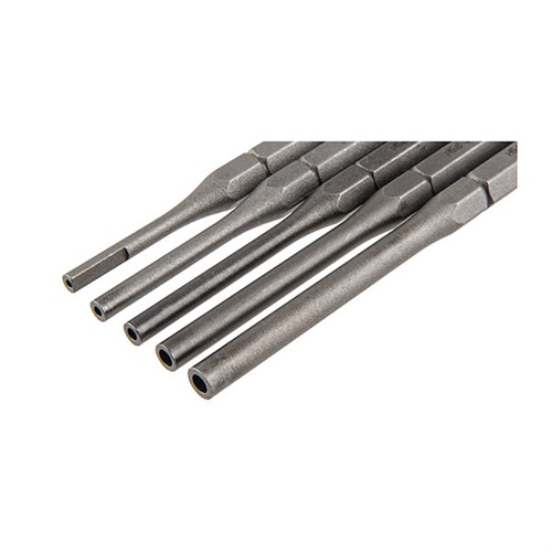 PREMIUM ROLL PIN HOLDERS The Brownells Premium Roll Pin Holders are precision-engineered tools crafted to securely hold roll pins, ensuring accurate alignment during firearm assembly and maintenance. These tools are designed to simplify roll pin installation and reduce the risk of damaging the pins or surrounding components. Description and Features: Accurate Drilling: Each holder is precisely drilled to securely grip tiny roll pins, making installation and alignment effortless. Specialized Notching: The 1/16" holder is specifically notched to clear M16/AR-15 rear sights, ensuring proper fit and easy access. The 3.5mm holder is ideal for retaining the breech block pin on Sig handguns, while the other sizes cater to a variety of roll pin tasks with precision. High-Quality Materials: Constructed from 5/16" hex high carbon 5160 steel and Bainite heat-treated for exceptional strength and durability. User-Friendly Design: A single groove on the grip section enhances handling, while laser-marked sizes ensure quick identification and improved efficiency. Available Sizes: The Premium Roll Pin Holders are available individually or as a comprehensive 5-piece set, accommodating common pin sizes encountered in firearms: 1/16" (1.6mm) 5/64" (2.0mm) 3/32" (2.4mm) 1/8" (3.2mm) 3.5mm (0.138") Specifications: Material: High carbon 5160 steel Heat Treatment: Bainite process for enhanced durability Handle Design: Hexagonal with a single groove for better grip Identification: Laser-marked for easy size reference Customer Insights: Our customers report that the Brownells Premium Roll Pin Holders are indispensable tools for firearms assembly and maintenance. The precise design allows for easy and accurate roll pin installation while preventing damage to pins and firearm surfaces. Many Customers highlight the specialized 1/16" holder for AR-15 rear sights and the 3.5mm holder for Sig breech block pins as standout features. Incorporating the Brownells Premium Roll Pin Holders into your gunsmithing toolkit ensures reliable and damage-free roll pin installation, enhancing both the efficiency and quality of your firearm maintenance projects.