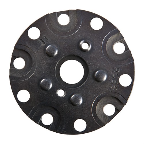 - Kohdista RCBS Progressiivinen Puristin Shellplate #31 puristimen kiinnityspisteiden kanssa.
