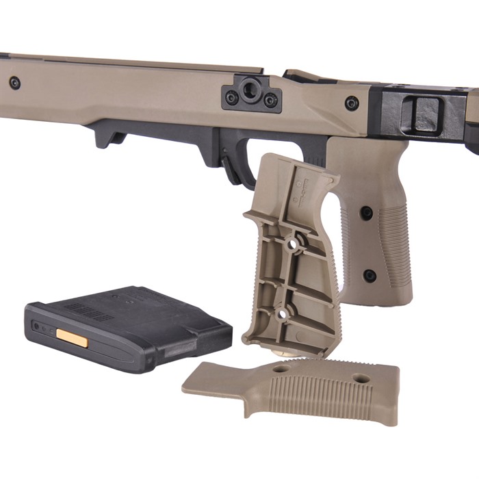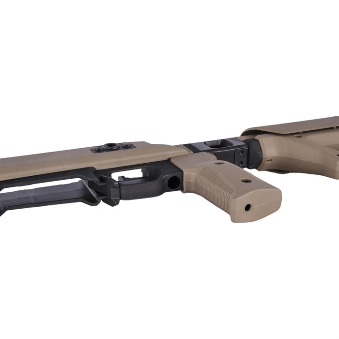 Yhteensopiva Remington® 700 Long Actionin ja muiden Remington 700 Long Action -jalkojen kanssa. Pro 700L Lite -mallista on poistettava perä/poskipakan, ennen kuin käyttäjä voi poistaa pultin toiminnosta. Mukana toimitetaan MAG698 (Magnum Long Action AICS 5-round PMAG).