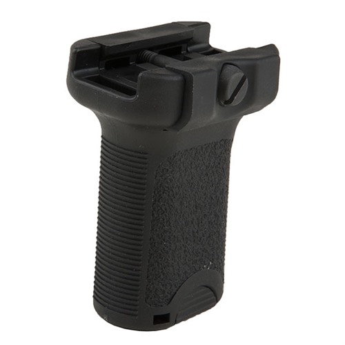 Polymeerinen pystykahva kiinnittyy Picatinny-rautaan, mikä auttaa parantamaan aseenkäsittelyä ja hallintaa. Ristiruuvimekanismi mahdollistaa asennuksen kenttätyökaluilla, kuten kolikolla tai patruunan reunoilla, ja kiinnitysklipsit ovat käännettävissä.
