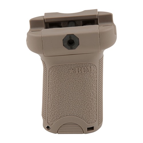 BRAVO COMPANY:n polymerinen pystykahva kiinnittyy Picatinny-rautaan, mikä parantaa aseiden käsittelyä ja hallintaa. Ristiruuvi-muotoilu mahdollistaa asennuksen kenttätyökaluilla, kuten kolikolla tai patruunan reunoilla, ja kiinnitysklipsit ovat käännettävissä.