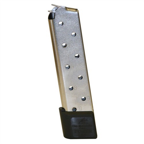 SPECS: Stainless steel body and follower. .45 ACP, fits 1911 Auto only. Mag. 10 - 10-round capacity.