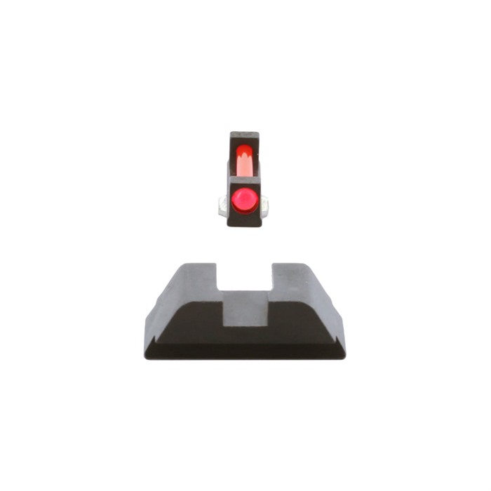 Range Series iron sights from AMERIGLO® are designed for every day concealed carry pistols, offering rugged, simple, effective designs that work. They are designed for speed and accuracy with a .115"" front sight blade paired with a perfect-width rear notch. SPECS Fits Make: Glock® Fits Model: 42,43,43X, 48 Fits MOS Slide: Yes Front Sight Style: Red Fiber Optic Front Sight Finish: Case Hardened Front Blade Width: 0.115 in. (2.92mm) Front Blade Height: 0.165 in. (4.19mm) Rear Sight Style: Flat Black Rear Notch Shape: Square Rear Sight Finish: Case Hardened Rear Blade Height: 0.168 in. (4.27mm) Overall Rear Height: 0.248 in. (6.3mm) Rear Notch Width: 0.15 in. (3.81mm)