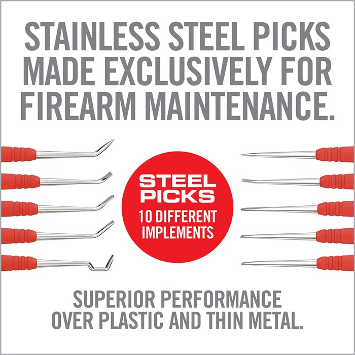 Erinomainen valinta yleiseen asehuoltoon, kun muoviset puhdistustikut ja puhdistusaineet eivät riitä. Heitä pois ne hammastikut ja käytä työkaluja, jotka on suunniteltu työhön.