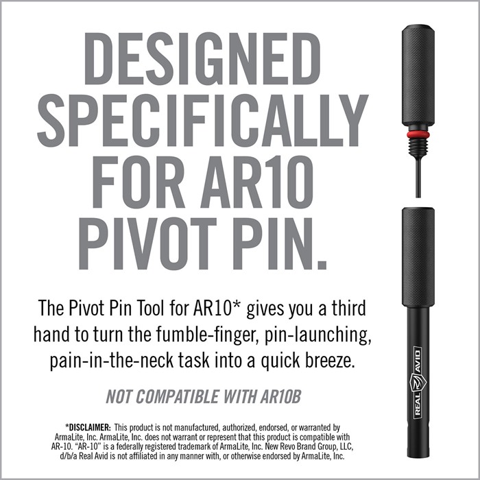 813119014758 Miten niin pieni tehtävä voi aiheuttaa niin paljon turhautumista? PIVOT PIN TOOL AR10:lle antaa sinulle kolmannen käden, joka muuttaa kömpelön, pinniä laukaisevan, vaivalloiseksi tehtäväksi nopeaksi ja helpoksi. 1-2-3-4 valmista, se on niin yksinkertaista. Asenna AR10 Pivot Pin alle 60 sekunnissa vaivatta.Toimitusaika noin 2-4 viikkoa.